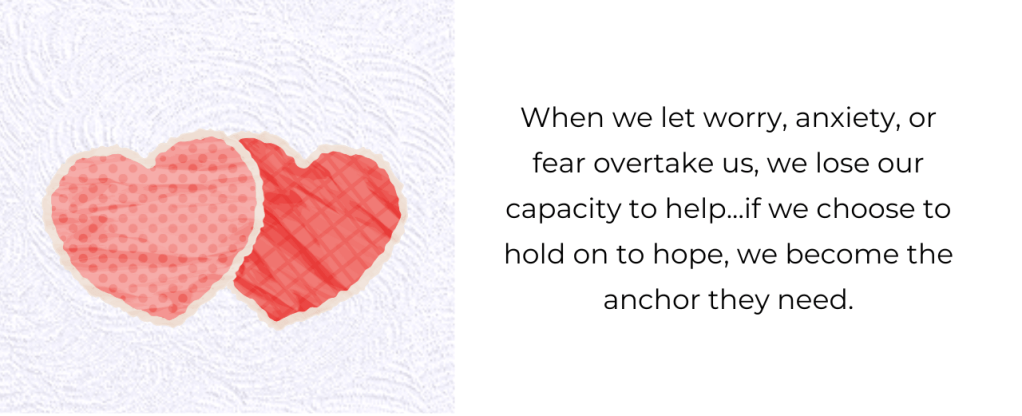 When we let worry, anxiety, or fear overtake us, we lose our capacity to help. Our emotional chaos can feed into others, instead of healing them. However, if we choose to hold on to hope, speak uplifting words, and radiate calm strength, we become the anchor they need.