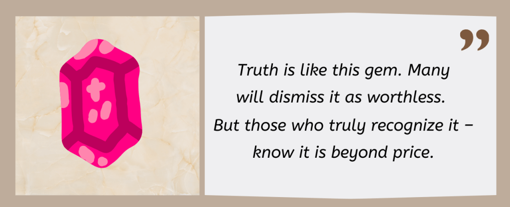 “Truth is like this gem. Many will dismiss it as worthless. But those who truly recognize it – know it is beyond price.”
