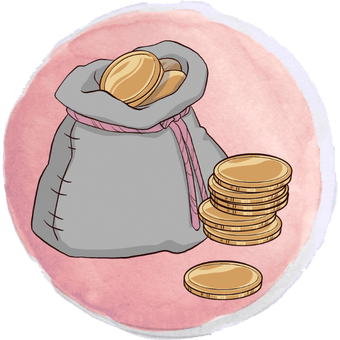 As they continued to walk further ahead, they stumbled upon a cloth bag. When they opened it, it had gold coins! The sage divided them into four shares. He took one share, gave two to the traveler, and left the last in the bundle.