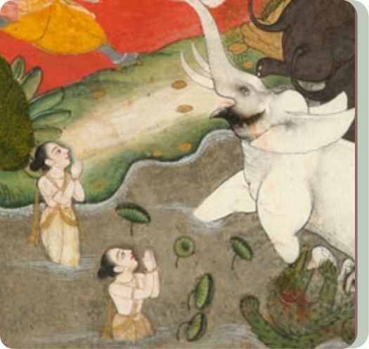 In that moment of utter helplessness, Gajendra realises that neither his own strength nor the power of his herd can save him.