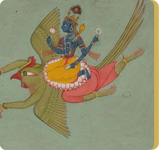 Moved by the desperate plea of his devotee, Bhagwan Vishnu descends on His vehicle, Garuda.