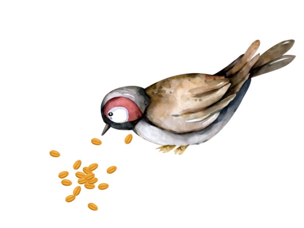 The sparrow eats only half a grain, then it flies through the sky chirping all day